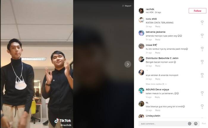 Maklum acara-acara komedi sekarang wajib pakai masker. Video yang dibagikan oleh akun TikTok racihdk tersebut sukses memalingkan perhatian sampai mendapatkan hampir 100 ribu suka. Ia sengaja mengunggah foto bersama seseorang yang ramai disebut sebagai Arya Saloka KW.